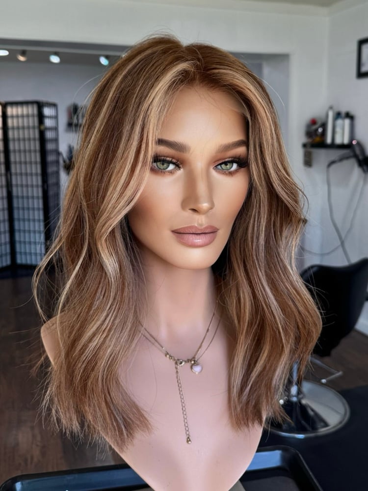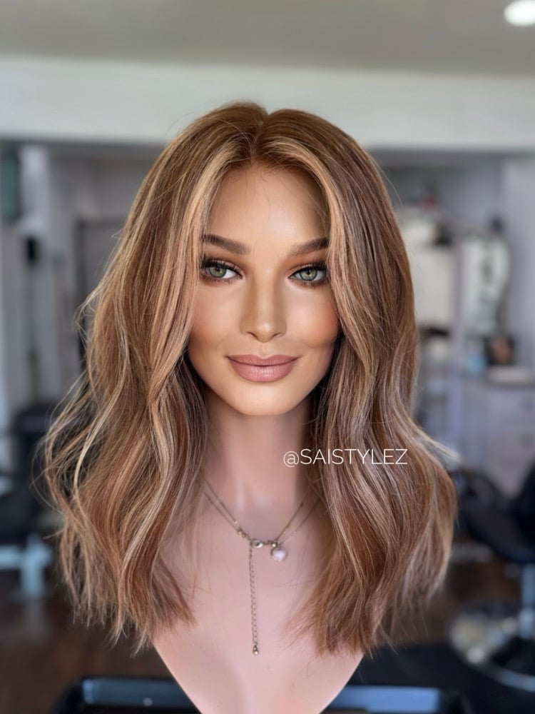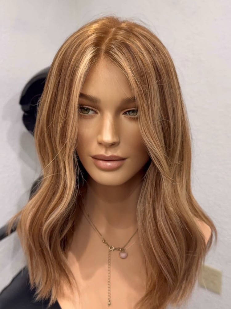 wig color:(this is not a warm brown wig. This is a true ginger base wig. Please see video below) level 5/6 copper gold base with golden blonde balayage highlights. all baseline customs are in house customized. The hair will fade/oxidize over time. To maintain longevity of your wig. Alway wash in color water. Using sulfate salon grade product only. Style low heat and keep hair stored in cool area away from direct sun.